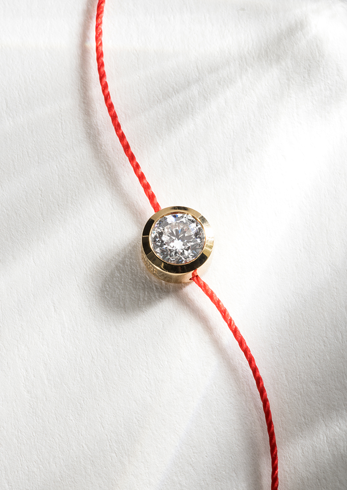 「一本の“赤い糸”に宿る願いや祈りを、18Kゴールドとダイヤモンドでモダンに昇華。極細コードの軽やかさと、ミニマルななかに秘めた強さが魅力です。日常にそっと寄り添いながら、スタイルを確かに引き立てるジュエリーです」。