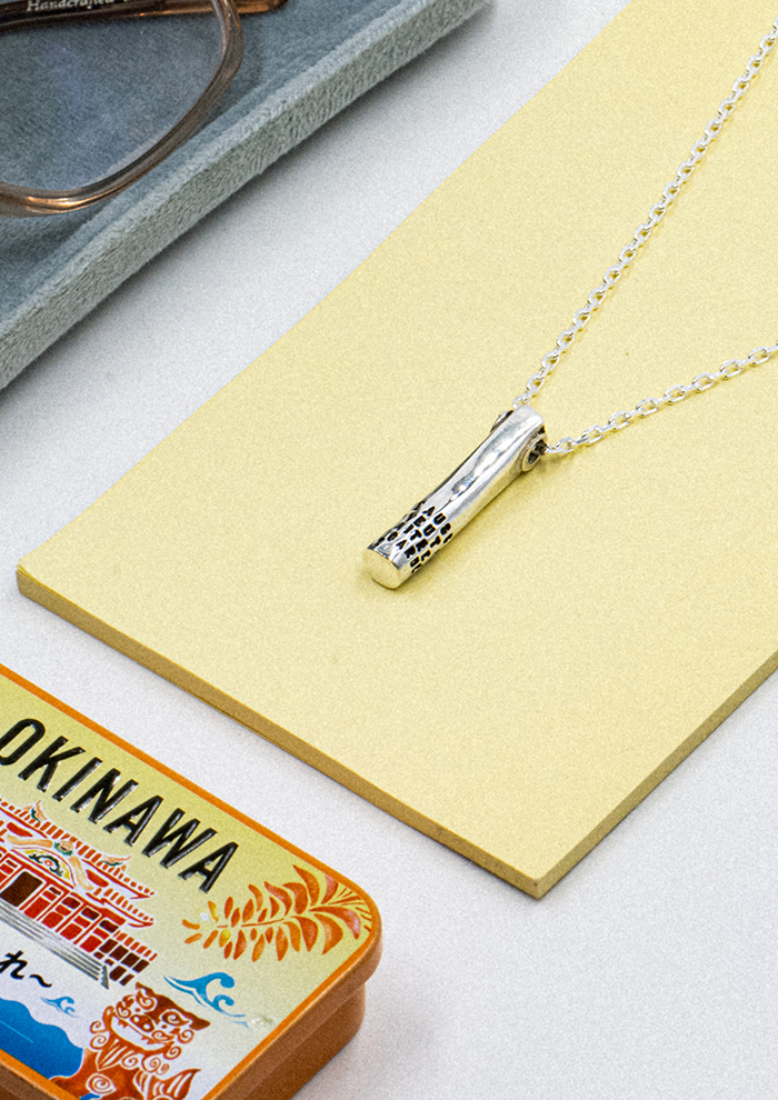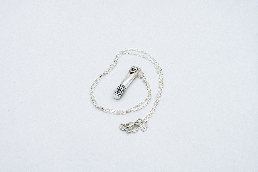 「“魂もまた自分を識りたいのであれば、魂と向き合わなければならないであろう(人間もまた同じである)”という、古代ギリシャの哲学者プラトンの言葉を刻んだ“灯台”をモチーフにしたネックレス」。