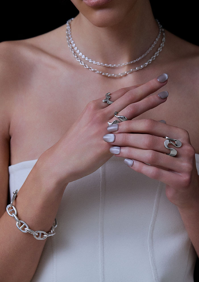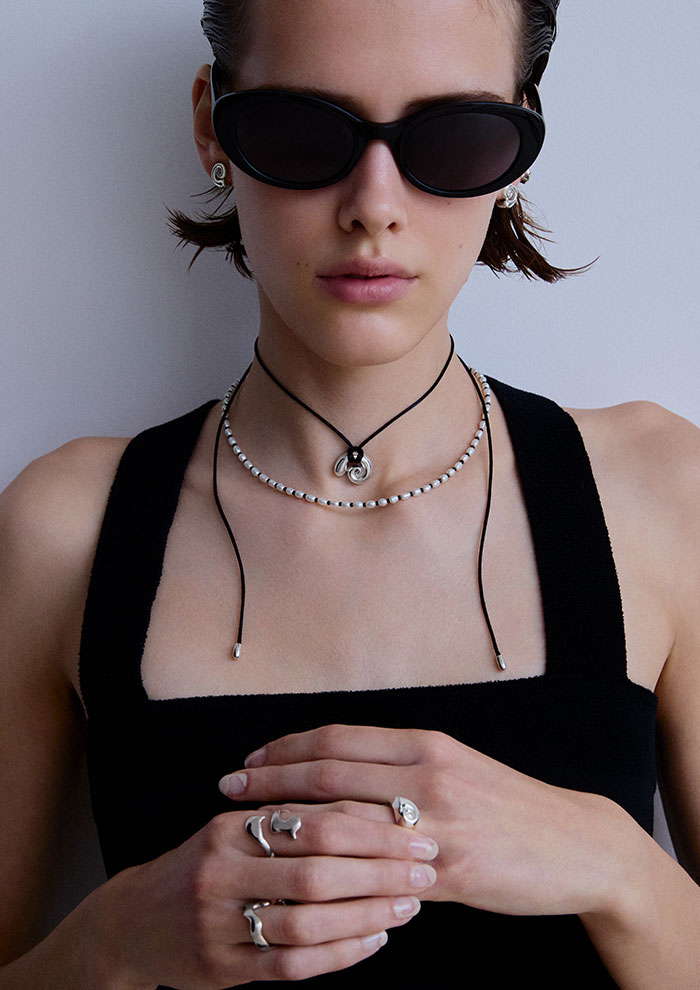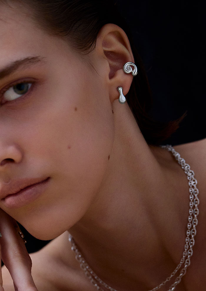 「立体的に流れる渦巻きモチーフ、軽やかな抜け感を生むマリーナチェーン、有機的なシルエットのイヤーカフ、そしてブラックビーズとパールがミニマルに調和したネックレスなど、異なる質感とラインが響き合うラインナップ。ギフトはもちろん、自分らしさを引き立てる特別なアクセントとしてもおすすめのコレクションです」。