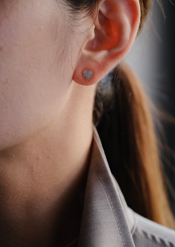 「先ほどご紹介した音符モチーフには、ピアスバージョンもラインナップ。パヴェセッティングの細やかな光の粒と音符のなめらかなラインが重なり合い、耳元に輝きを添えてくれます。片耳ピアスだからこそ、もう片方はシンプルなピアスと合わせてアシンメトリーなバランスを楽しんで」。