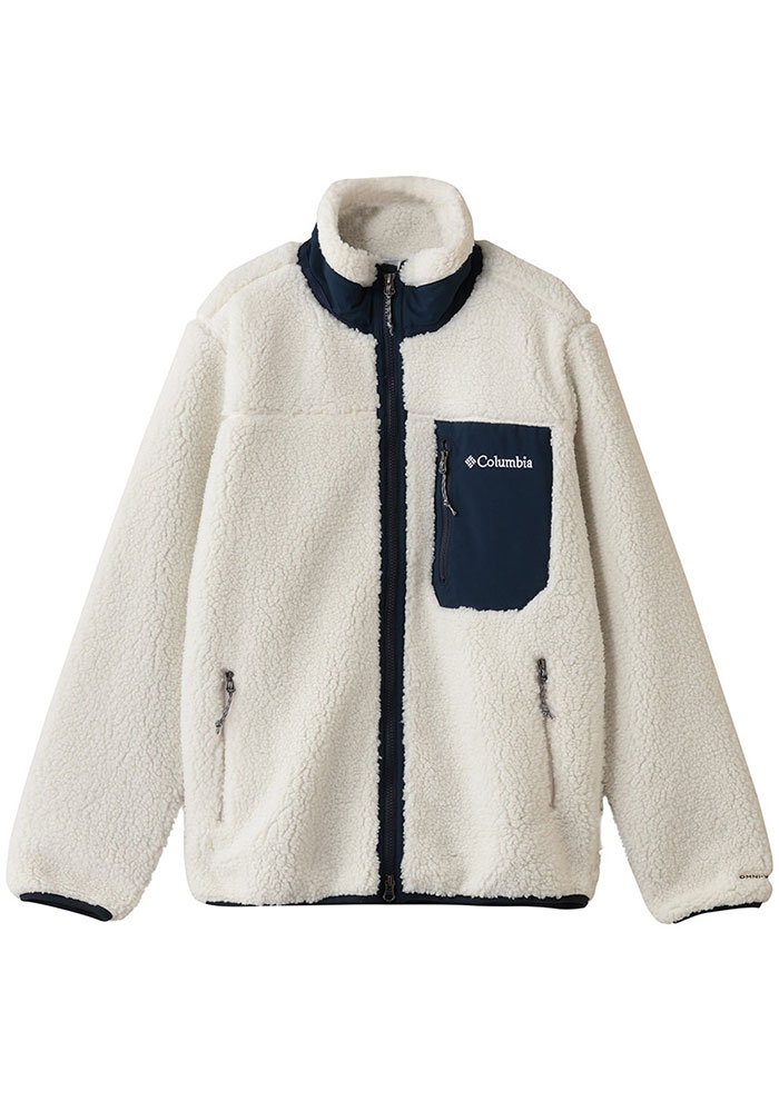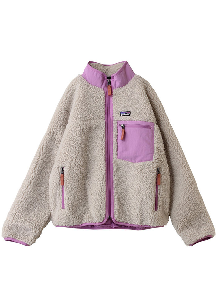 「ソフトなオーシャンサイクルの認証済みリプリーブリサイクルポリエステル100%の6ミリ厚パイルフリースを使用した、防風性と保温性を提供するキッズ用のレトロXジャケット。風からのプロテクションを高めるリサイクルポリエステル100%のタフタ裏地付きも見逃せないポイントです。キッズサイズのXXL(170)は大人の女性も着用可能」。