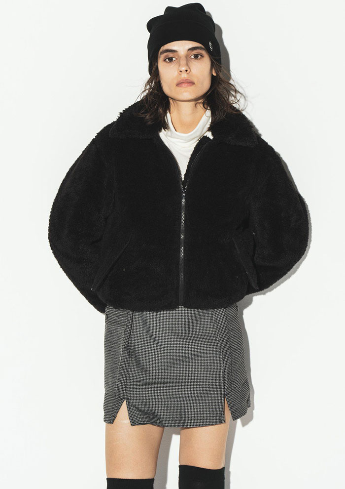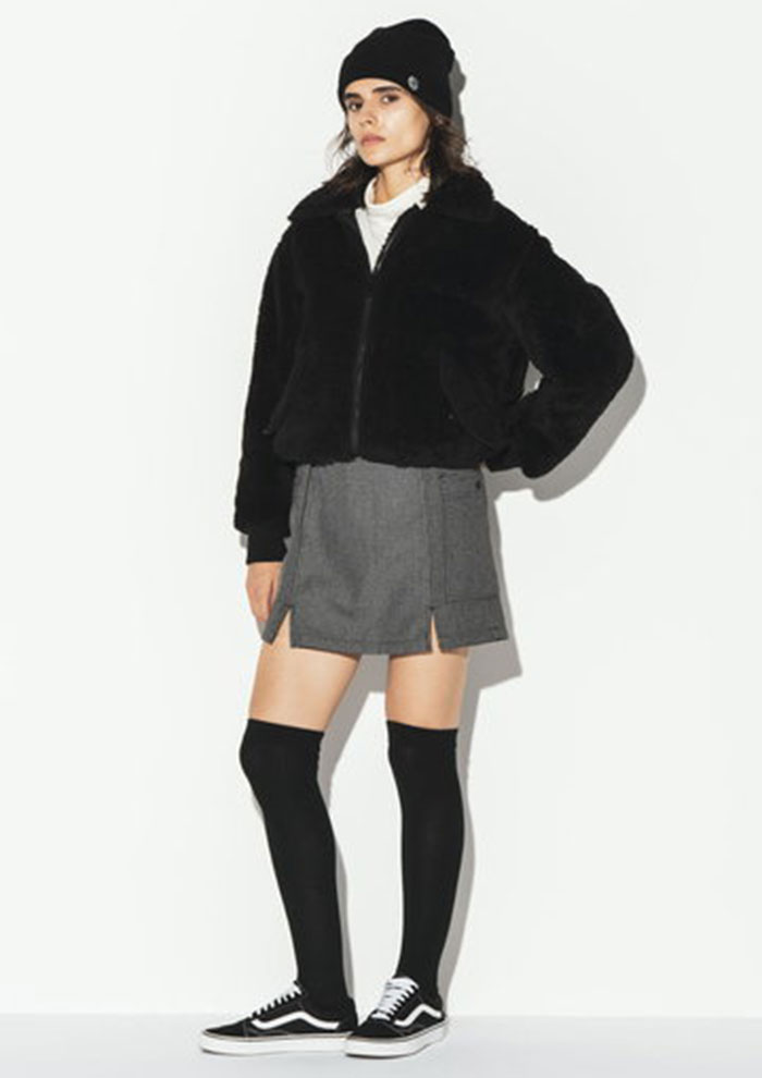 「丸みのあるシルエットが愛らしい、ナイロン×ボアのリバーシブルブルゾン。ふわふわのボア部分は吸湿発熱素材で暖かさを保ち、ボリュームがありながらもショート丈の旬バランスで幅広いスタイルにマッチします。フェミニンなツイードチェックのミニ丈スコートは、実用的なポケットやDカンを備え、アクティブシーンにも最適! ゴルフのラウンドはもちろん、日常コーデにも取り入れやすい組み合わせです」。