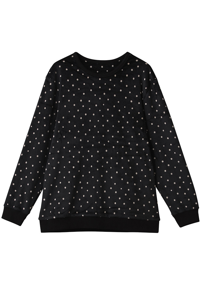 「なめらかなタッチと柔らかな肌触りのストレッチシャギー素材を使ったルームウェア。抜群の伸縮性によってリピーターも多数の名品です。新鮮なドット柄もポイント。内側がボアのルームシューズは暖かく、脱ぎ履きしやすいと好評!」