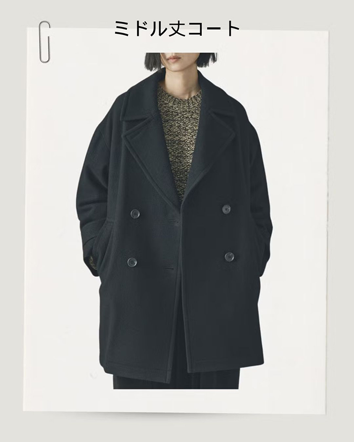MIDORI:ロングコートは持っているし好きなんですけど、関東の極寒すぎない冬シーズンや動きやすさを考えると、最近はミドル丈がちょうどいいな~と。