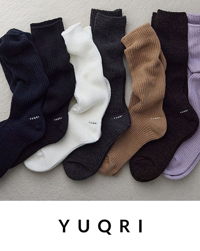 「YUQRI(ユクリ)」は、心地よい履き心地と品のあるデザインにこだわったソックスブランド。ていねいに編み立てたソックスは驚くほどなめらかで、靴の中でも快適! シンプルなのに佇まいが美しく、自然と日々のライフスタイルに寄り添います。履いた瞬間に感じる軽さとフィット感、豊富なカラー展開で、贈り物にも人気の一足をぜひ手に取って。