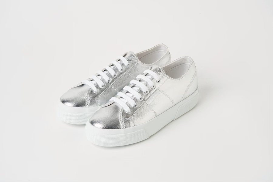「「ペリーコ」 と、創業100年以上の歴史を誇る、ヨーロッパの国民的シューズブランド「スペルガ」のコラボレーションシューズ第4弾にもご注目。前回完売したホワイトスニーカーに加え、新作も登場します。アッパーには雨季にも頼れる撥水合皮スエードと、「スペルガ」で最も人気の高い素材のひとつであるメタリックキャンバスを採用。その機能性と華やかさは、シンプルなスタイリングに合わせるだけで足元が引き締まります。注目度が高い完売必至アイテムのため、お早めのチェックを」。