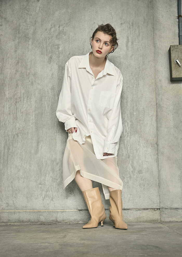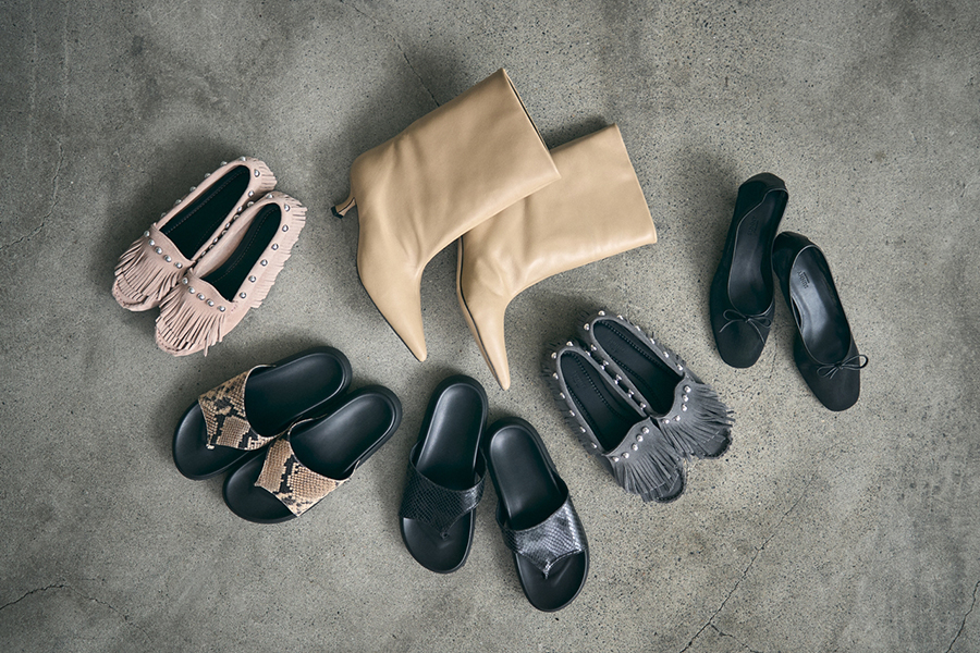 「2026年春夏は“Reflections in Motion”をテーマに、流れゆく時間の中で光を映し出す、モダンな女性の足元をご提案。透明感や艶めきを残しながら、日常に溶け込む洗練された輝きを表現しています。ツヤのあるレザーや透ける素材が光を柔らかく反射し、歩くたびに表情を変え、水面のような透明感も都市のきらめきを彷彿。軽やかでありながら芯のある佇まいが、日常を凛と演出します」。