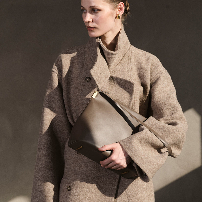 「毎日のスタイリングに自然と寄り添う“オーロラ トート”。すっきりとしたフォルムと洗練されたデザインが、デイリースタイルを上品にアップデートしてくれます。2本のトップハンドルとマグネットクロージャー仕様で、使いやすさも◎。カジュアルはもちろん、通勤やきれい目スタイルにも合わせやすく、シーンを選ばず活躍します。主張しすぎない佇まいながら、持つだけでシックな存在感を発揮。広めの内側スペースには、日常に必要な荷物をしっかりと収納でき、取り外し可能な大きめのウォレットはミニバッグとしても単体使いできます。シーンに合わせて使い分けできるのもうれしいポイント」。