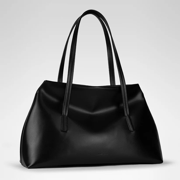 「シンプルなデザインと実用性を兼ね備えた“オーロラ”。ほどよい大きさのミディアムサイズで、デイリー使いはもちろん、通勤やオフィスシーンにも活躍します。すっきりとしたラインと無駄のないデザインは、忙しい毎日に自然となじみ、持つだけで洗練された印象に。かっちりしすぎない適度な柔らかさがあり、モダンさと上品さのバランスも絶妙です。収納力も魅力で、日常に必要なアイテムがしっかり入る設計。取り外し可能なウォレット付きのため、紙幣やカード、IDなどをすっきり整理できてバッグの中もきれいに保てます」。