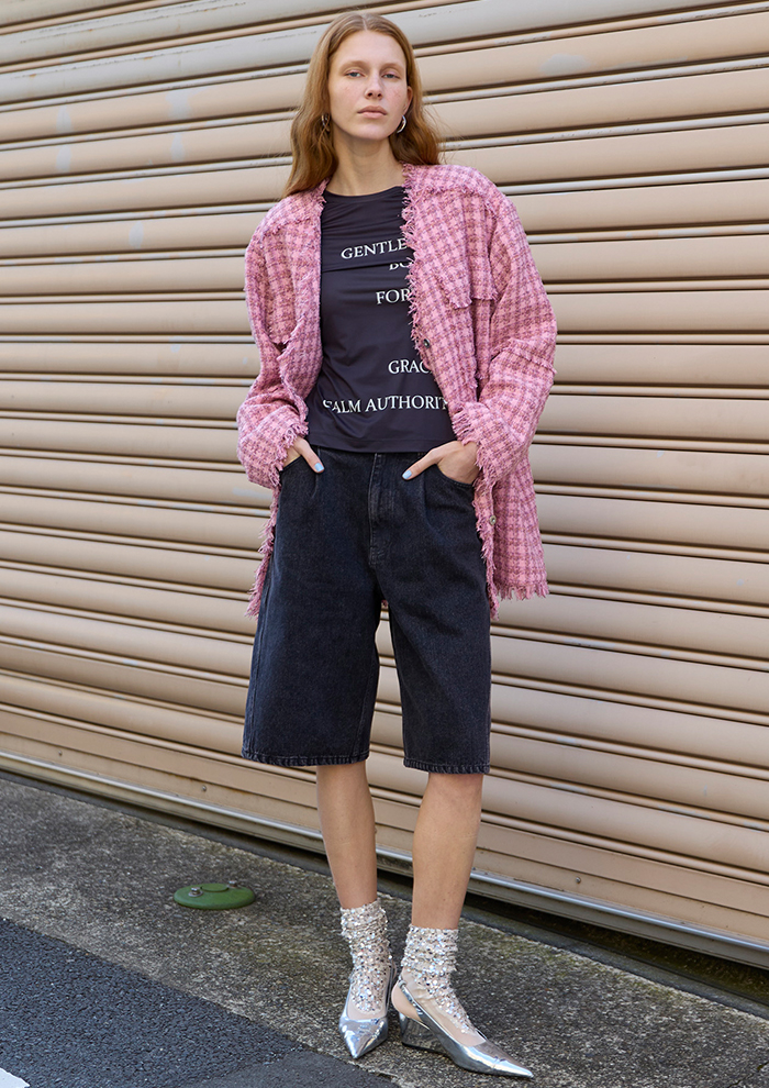 ツイードジャケット×デニムハーフパンツで、春の軽やかカジュアル