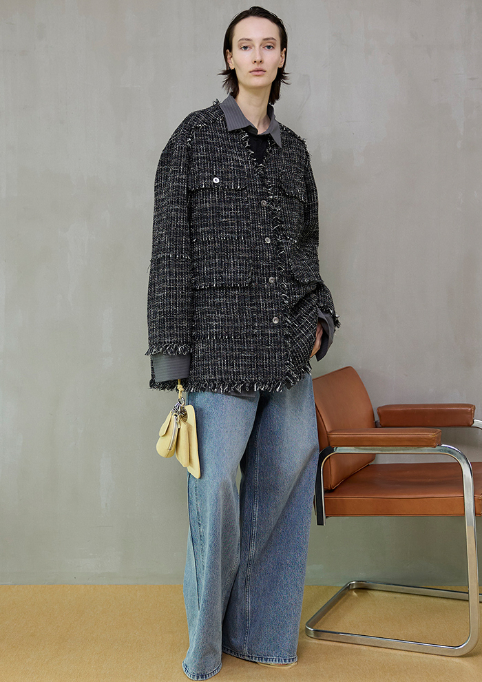 ツイードで魅せる、旬バランスのテーラードスタイル