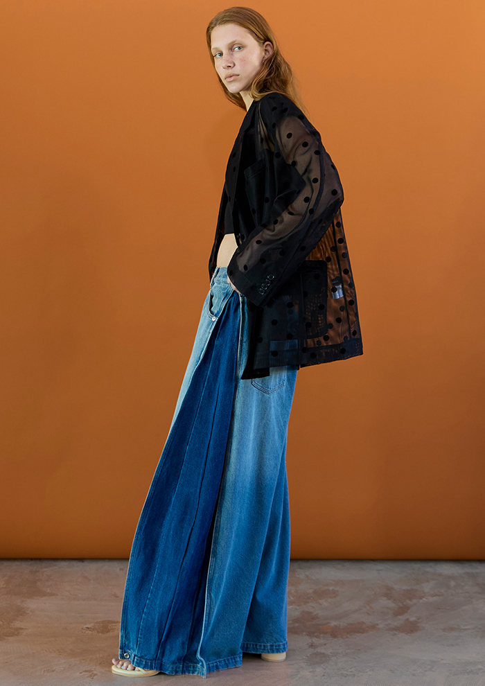 深めタックが生む、モード感漂うコクーンデニム