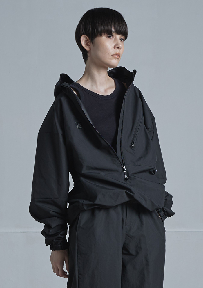 「立ち上がりの美しいネックデザインは、ジップの開閉によってモードな印象に表情を変えられます。さりげなく配置したポケットやディテールが、日常使いにうれしい機能性とデザイン性を両立。スポーティになりすぎず、都会的で洗練された着こなしを叶えます。デイリーから旅先まで、シーンを選ばず活躍する「シシ」らしいウィンドシャツ」。