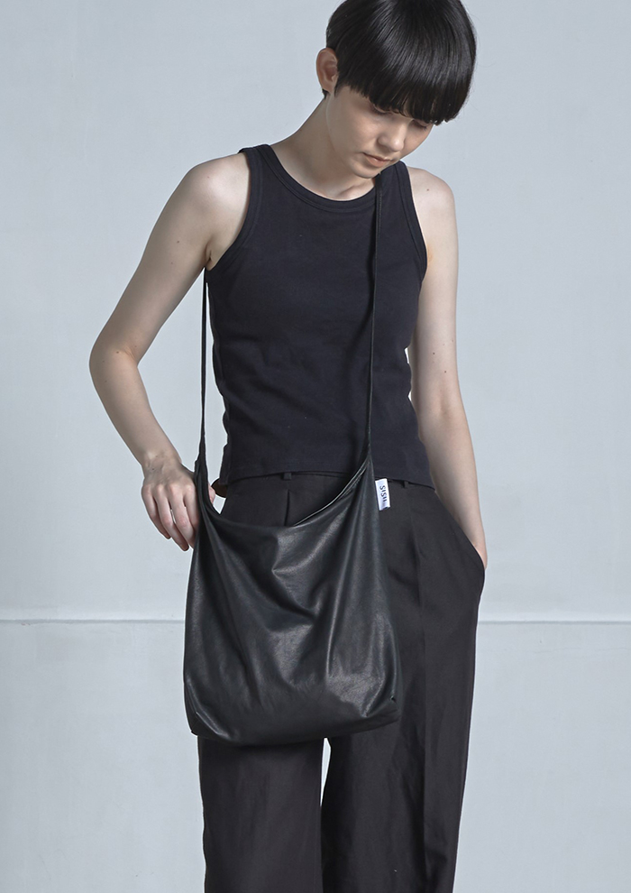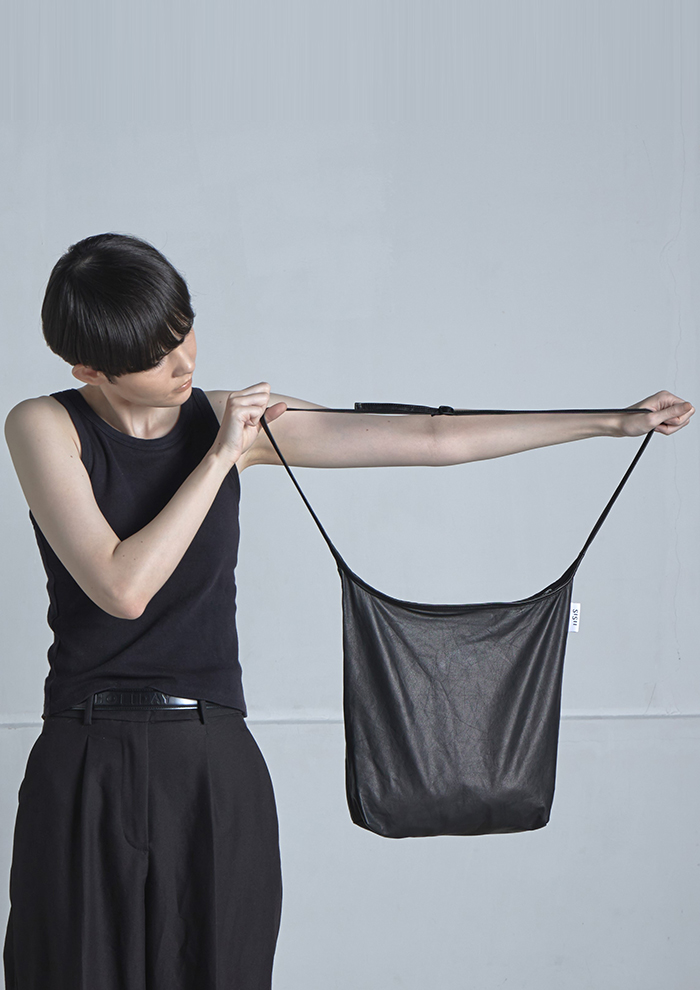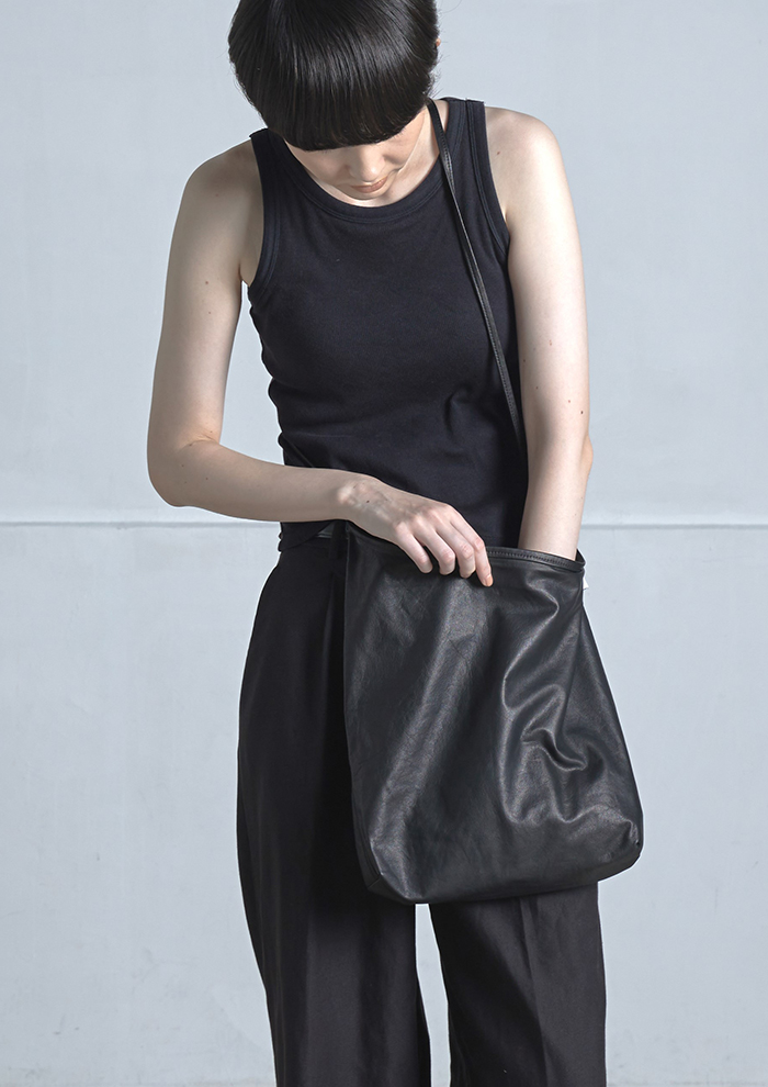 「しなやかなレザーをぜいたくに用いながらも、驚くほど軽く仕上げた、手のひらサイズに折りたためるパッカブル仕様のショルダーバッグです。「シシ」独自のレザーウォッシャブル加工によって、柔らかく風合い豊かな質感を実現。バッグとして使用するときは上品な存在感を放ち、使わないときは小さく畳んでポケットや旅のスーツケースに収納可能」。