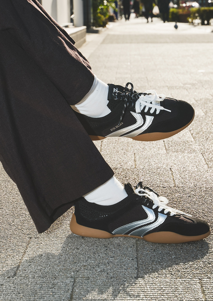 「「スティーブ・マデン」の大人気モデル“BISCOTTI”は、シンプルなのに今っぽさが漂う、大人カジュアルの即戦力スニーカー。つま先からかかとにかけて、なだらかに広がるフレアソールが特徴で、脚のラインをきれいに見せながら、スニーカーなのにどこか上品な印象も兼ね備えています。ベーシックカラーでスタイリングもしやすく、パンツにもスカートスタイルにも好相性。オフィスカジュアルにもぴったりです」。