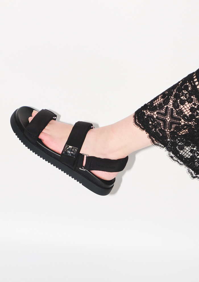 「軽やかなナイロン素材と、洗練されたカラーが魅力の“MONAT”は、軽量ナイロン素材を使用した一足。履くだけで今っぽくきまるデザイン性を備えた、大人のための万能サンダルです。足に触れる部分はやわらかく、ストラップ部分は甲をしっかりホールドしてくれるため、長時間歩いても疲れにくいのも魅力的」。