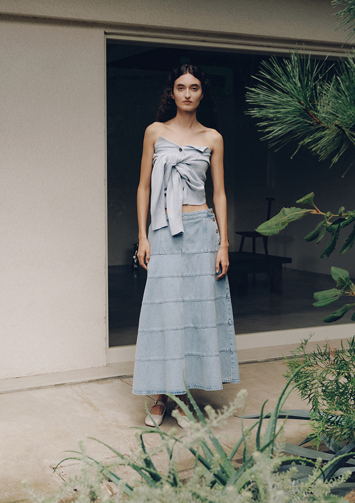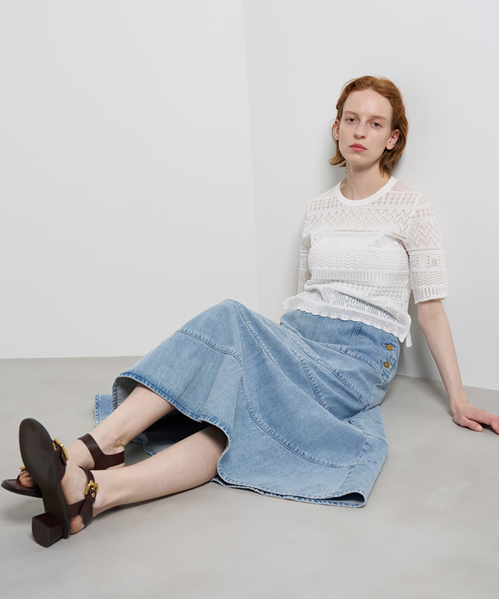 「1889年、アメリカ・カンザス州で産声を上げた伝説的デニムブランド「Lee(リー)」。実用性を追求したワークウェアとしてカウボーイやワーカーに愛され、ジーンズの歴史を切り拓いてきたその堅牢な美学は、今もなお世界中で輝き続けています。この春、「ランバン オン ブルー」が敬意を込めて共鳴したのは、その“飾らない本物”の精神。「リー」のアイコニックなディテール、ワークウェアの機能美に、「ランバン オン ブルー」らしいドラマチックなフレアラインやマリンディテールをプラスし、単なるカジュアルに留まらない、大人のための“気品あるデ二ム”へと昇華させました。アイテムはワンピース、パンツ、スカートの3型を予約販売」。