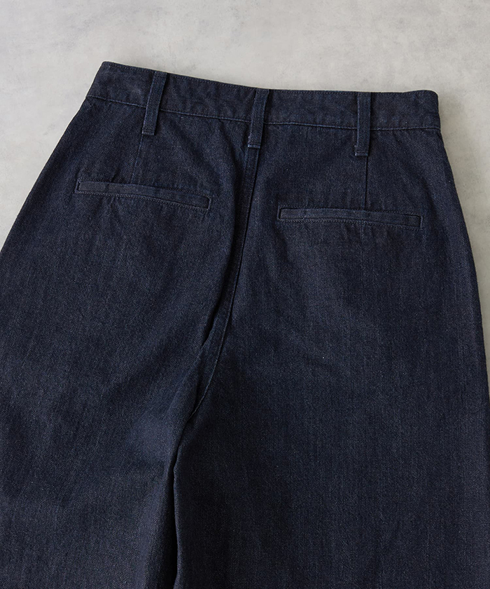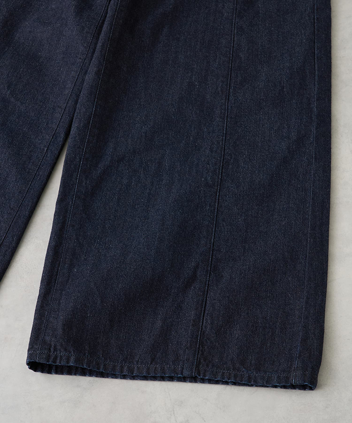 「素材は軽やかでしなやかな11ozの右綾デニムを採用。綿100%ならではのナチュラルな風合いと適度な厚みがあり、シーズンを通して快適に着用できます。カラーは2種類。ワンウォッシュは生地の色目を際立たせ、クリーンな印象に。ブリーチはデニム特有のあたり感を残しつつ、爽やかなライトブルーに仕上げています」。
