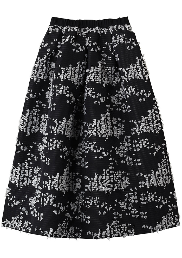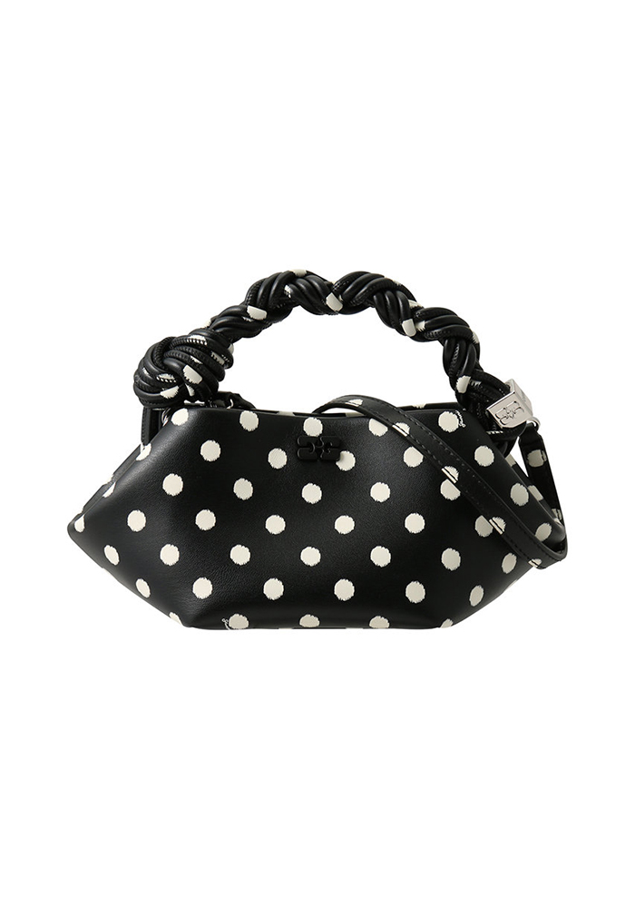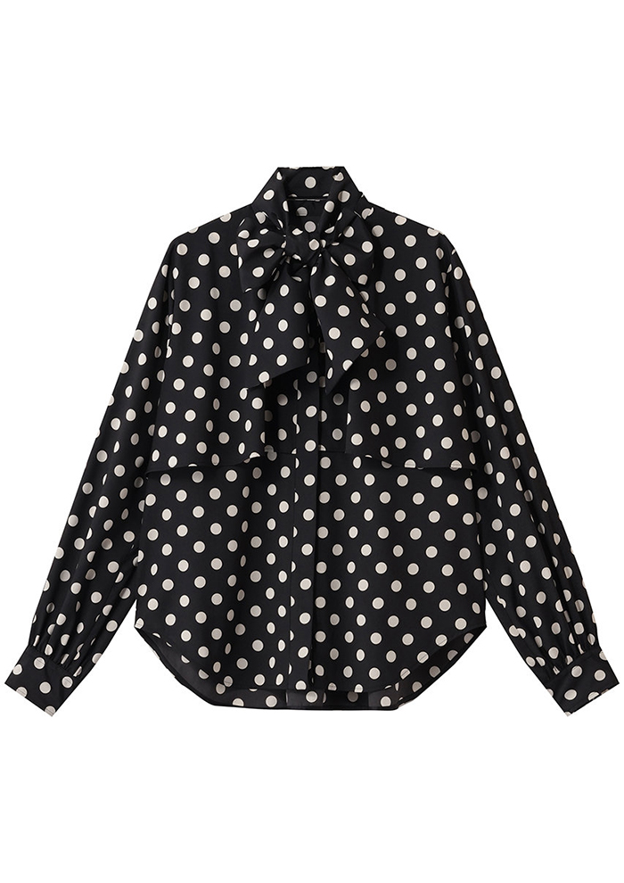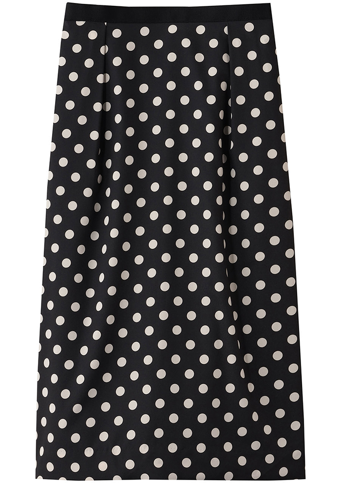 エターナルなモノトーンのドット柄でドレスアップ。ラッフルがあしらわれたボウブラウスとタイトスカートのセットアップで、レディライクに。ぱっと目を引くプレイフルなおしゃれを楽しみたい。