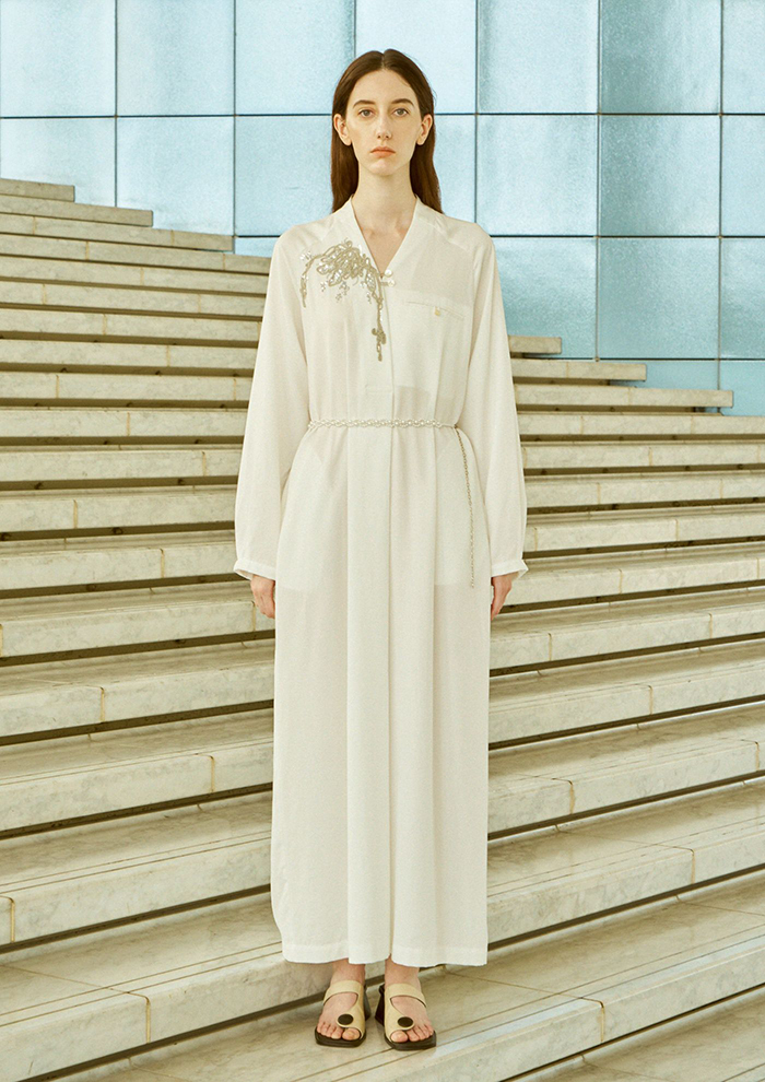 「2026年春夏のテーマは“GLEAM”。“淡いきらめき”や“かすかな光”という意味で、2025年秋冬の“DARN”がデザイナーの内心の葛藤と向き合い表現したコレクションとするなら、“GLEAM”はその葛藤から一歩踏み出し、淡いかすかな光を見つけたシーズンです」。