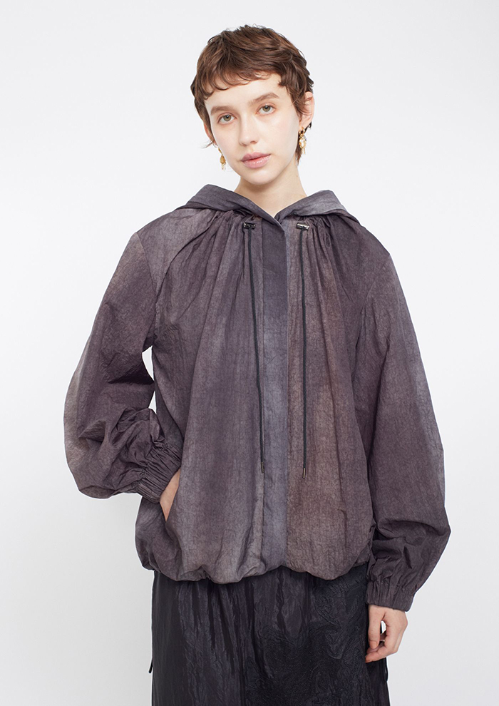 「キーワードは“膨らみ”と“解放感”。“膨らみ”は期待に胸を膨らませるように、丸みを帯びたバルーンシルエットやカッティングで表現しています。“解放感”はまとう人の心を軽くし、どんなときにも前に一歩を踏み出せるようにと、カジュアルな素材やアイテム要素を「ミューラル」らしくデザインに取り入れています」。