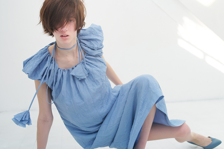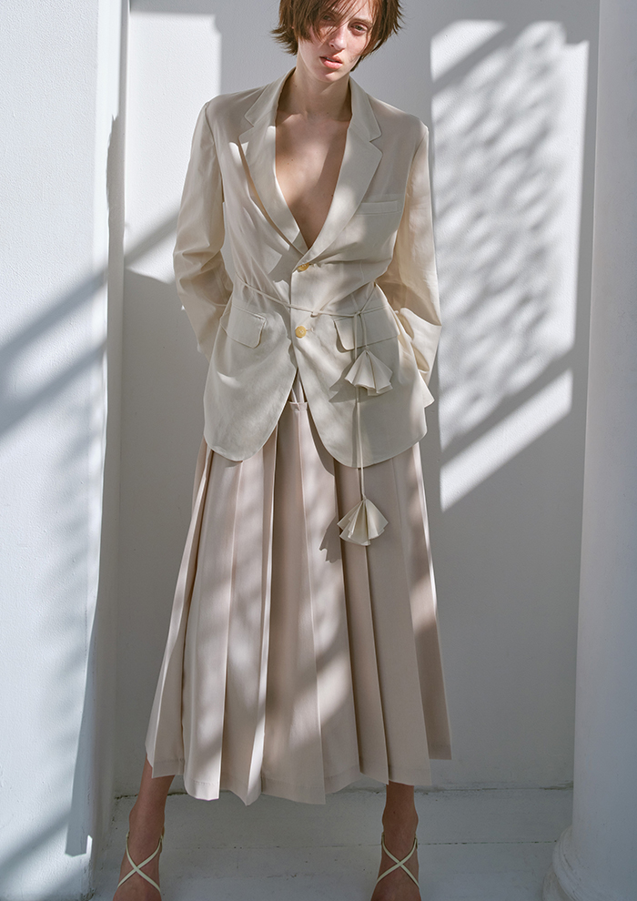 「空気をはらむようなしなやかさ。動きに寄り添う柔らかなフォルム。控えめなユーモアと、ひそやかな強さ。声高に主張するのではなく、佇まいで語ること。それが“EASE”という姿勢であり、洋服を通して、ひとりひとりの内面にある美しさをそっと引き出します」。