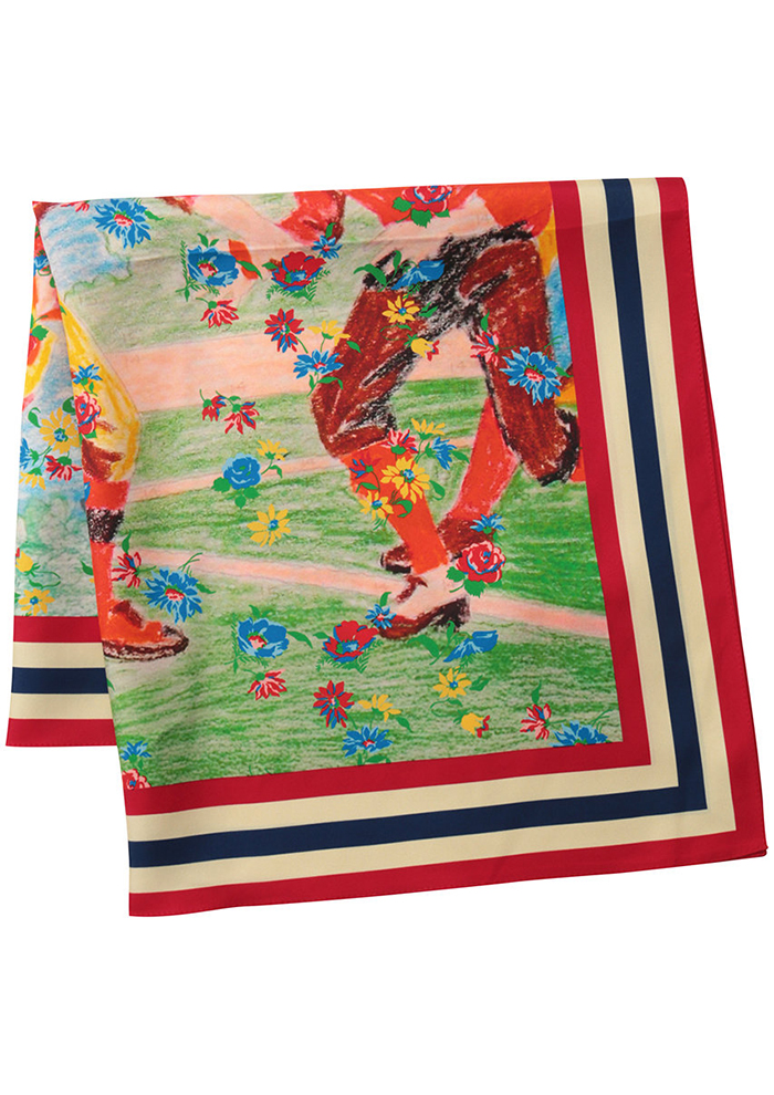 「羊モチーフのボストンバッグや、アメリカンフットボールのワンシーンをプリントしたスカーフなど、小物にも遊び心が散りばめられています」。