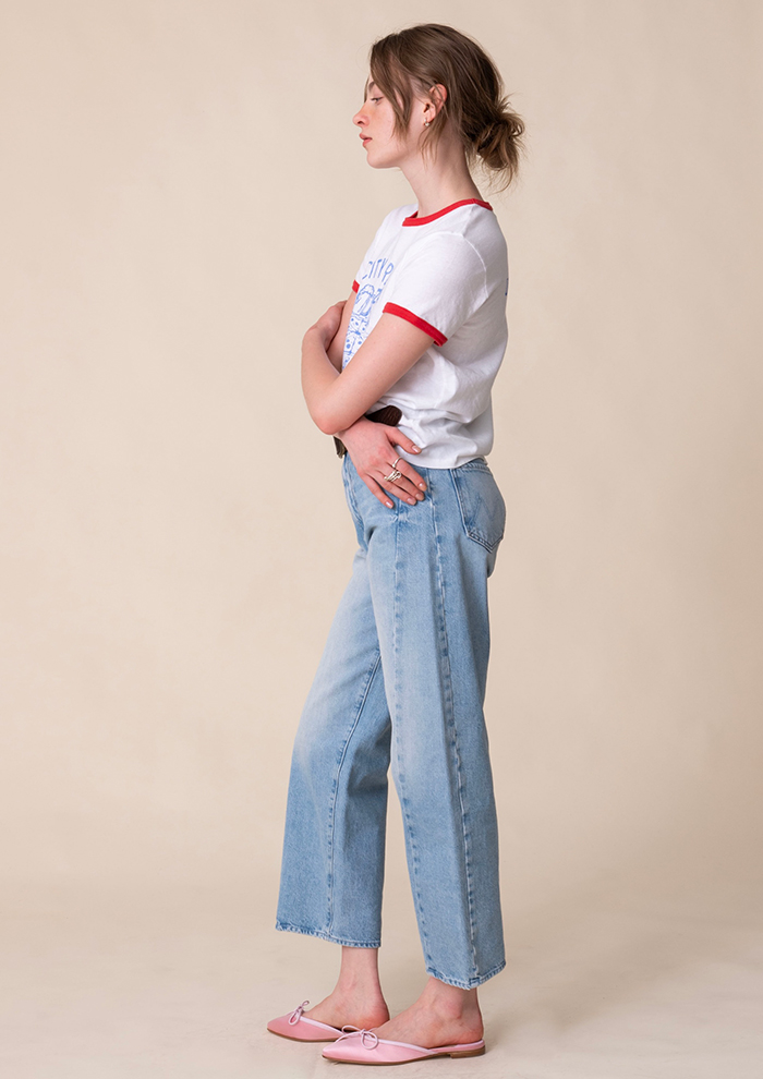 「細身ストレートの“KICK IT”アンクル丈デニムは、すっきりとしたシルエットと軽やかな丈感が春のスタイリングにぴったり。コンパクトなトップスからゆったりとしたシャツまで、バランスよく合わせられます。これさえあれば春のレジャーやお出かけスタイルにも困りません!」