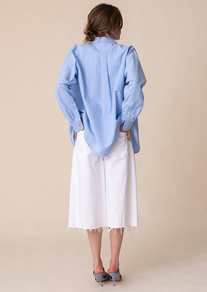 「人気の高い“HALFPIPE”のアンクル丈デニム。今シーズンは、明るいライトブルーのウォッシュが登場しました。ほどよいゆとりのあるシルエットと軽やかな丈感で、リラックス感のあるデニムスタイルに」。