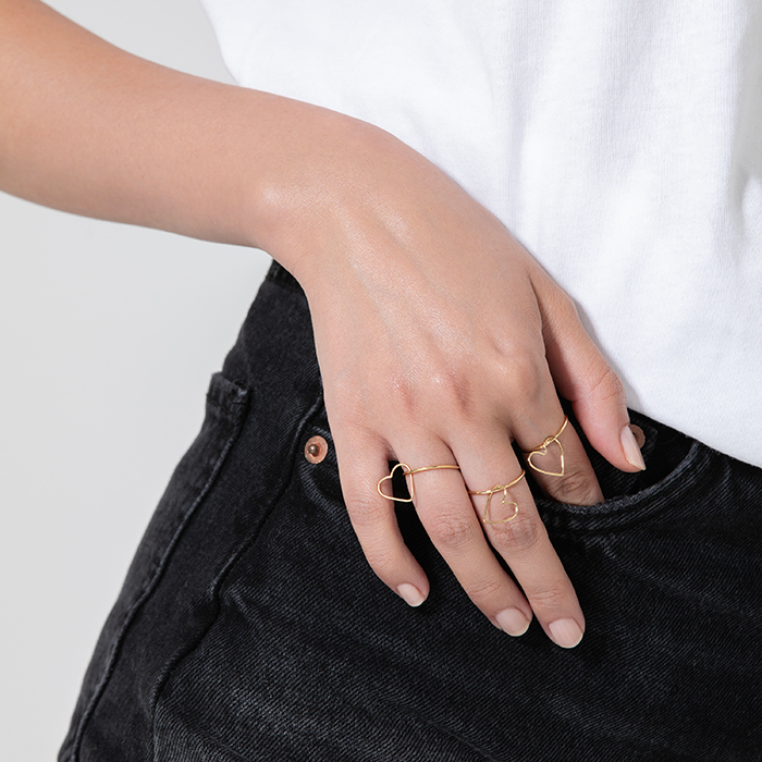 「まずは、小さなハートがゆれ動く、華奢で愛らしいリングから。“光るもの”や“ゆれるもの”を身につけていると、第一印象が格段にアップするとか。このリングは繊細なデザインながら、指先を動かすたびにハートが揺れて、さりげなく視線を集めます。ハートと一緒に、誰かのココロもゆらしてみて♪」。