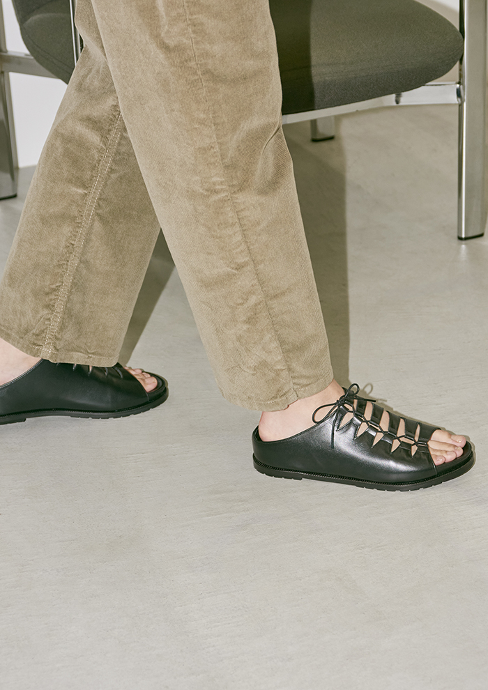 「「カチム」では、独自の数値をもとにあつらえたオリジナル木型を用い、見えない部位にまで厳選素材を採用しています。木型の調整や型紙設計、吊り込みなど、すべて熟練職人によるもの。要所は精緻な機械成形にすることで、履くほどに足になじみ、歩き姿を凛と美しく導きます。今季は“Venture Out”をテーマに、軽やかでいて上質、装いに自然となじむミニマルなシューズを提案。どんな日も前を向いて一歩を踏み出す力を与えながら、静かに寄り添います」。