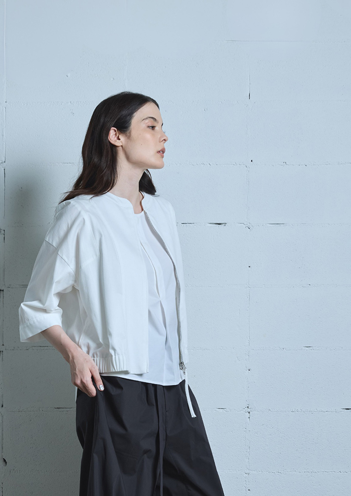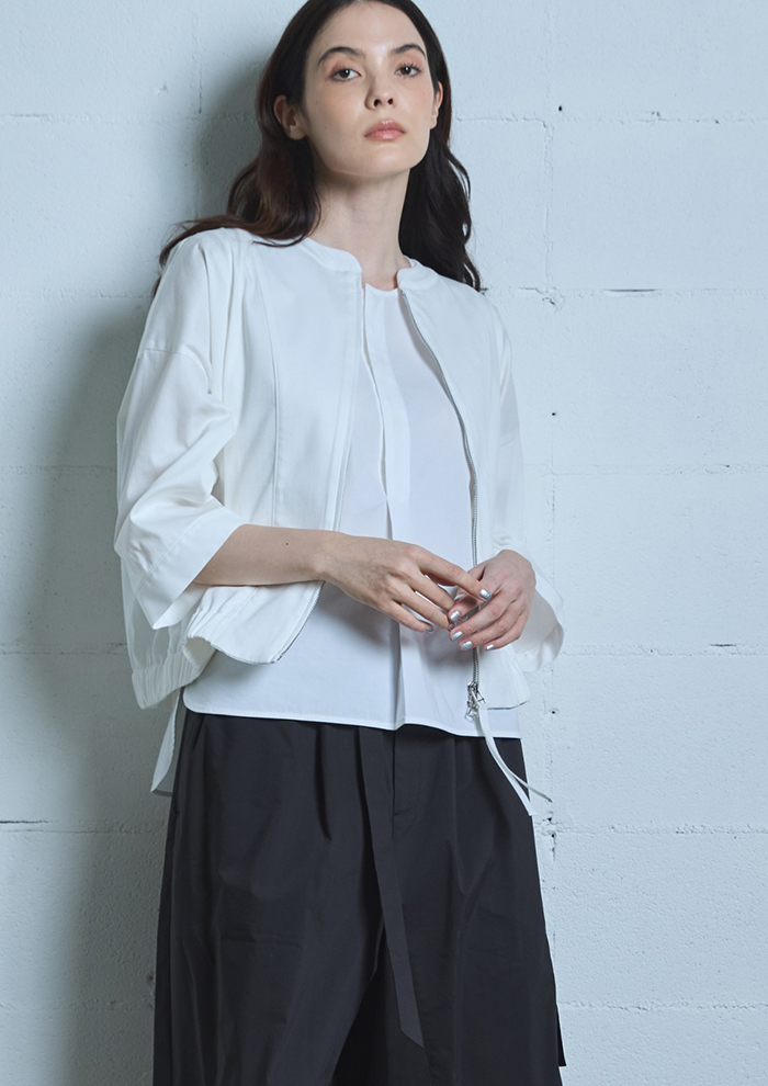 「同素材でホワイトも展開。夏のエアコン対策としても、オン・オフ問わずシーンレスに活躍します。セットアップだけではなく、デニム×白の組み合わせで春夏のおしゃれを格上げ」。