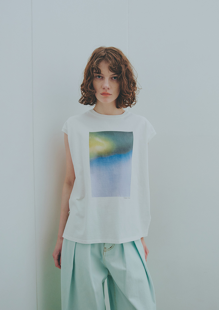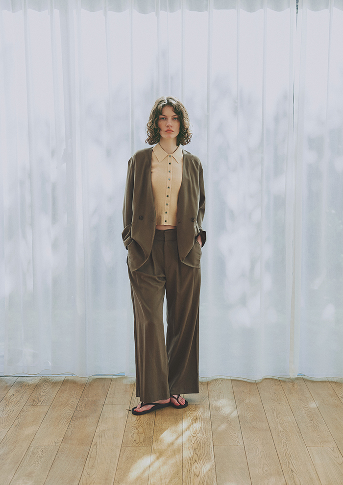 「2026年春夏は、光や水、空気のゆらぎといったイメージから着想を得たコレクション。カラーには、色として成立する前の未完成なトーンを採用し、シアーやツヤ感のある素材で表現しています。また、爽やかさやみずみずしいイメージをこめて、ブルーデニムのアイテムも多数展開。永遠の定番であるTシャツ×デニムを今年らしく再解釈しています。ふんわりとしたカラーを大人らしく引き締める、新作のセットアップや豊富なジャケットの数々にもご注目を」。