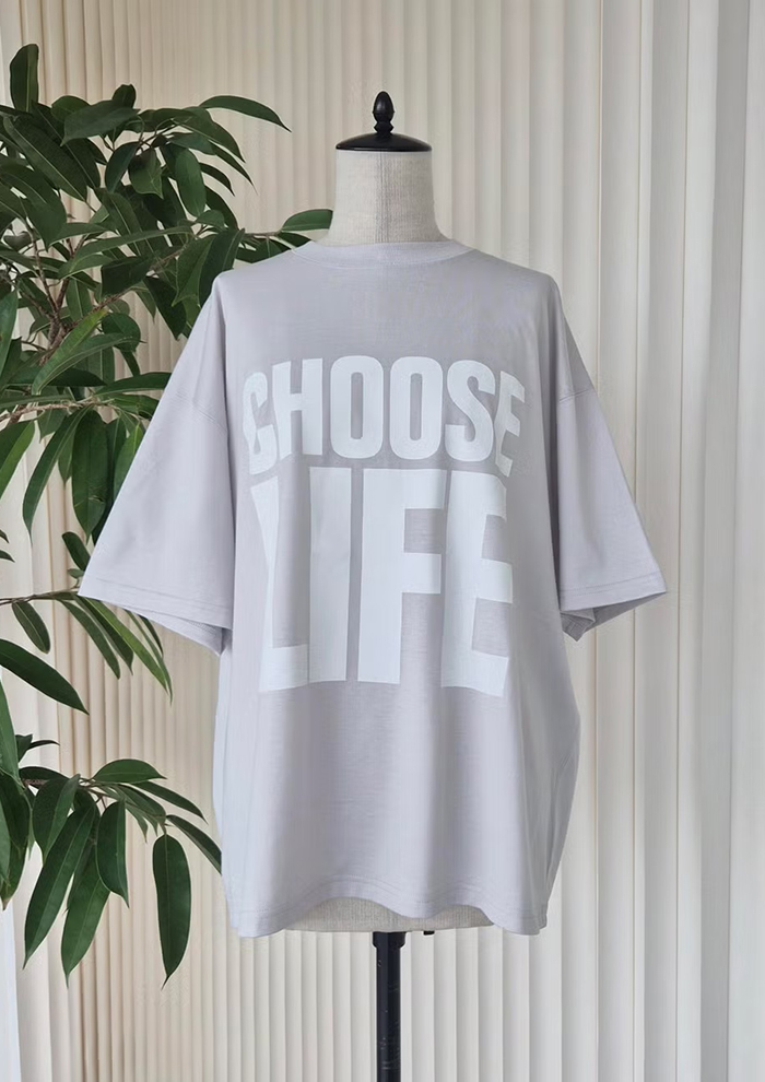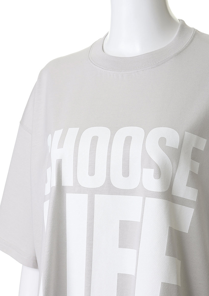 象徴的な「CHOOSE LIFE」を、初の淡い配色で別注。自分の価値観で選ぶことの美しさを伝える、ELLE SHOP限定の特別な一枚です。