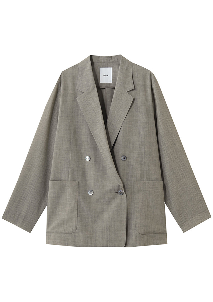 「シャツ感覚で羽織れるアンコンジャケットは、ダブルブレストで低めのゴージ位置が抜け感を演出します」。