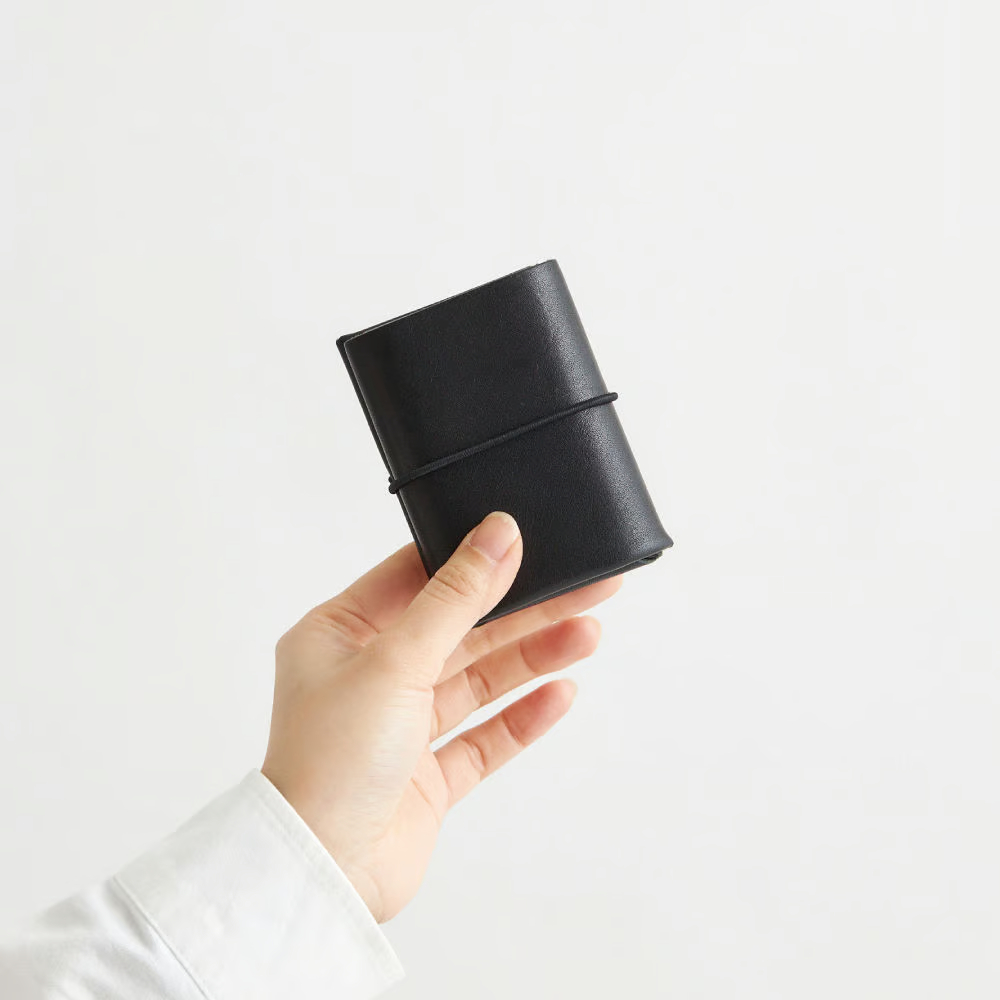 一枚の革を折り込んで組み立てた、コンパクトさが魅力の「i ro se/イロセ」の3つ折り財布。見た目によらず収納力が抜群で、紙幣・コイン・カードをそれぞれ分けて収納できます。中身が落ちないように留めるための丈夫なゴムバンド付き。