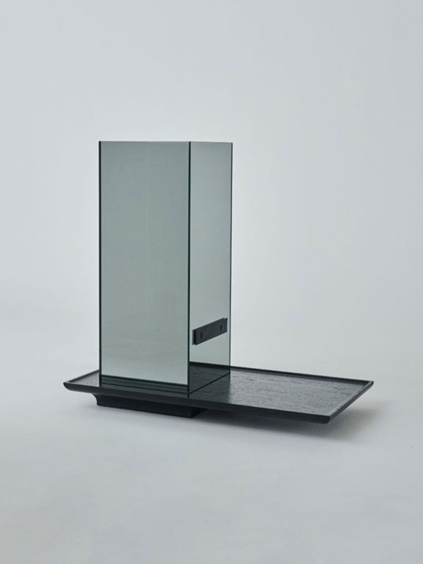「ブランド名の「NCLF」はニュークラシックライトフィールドの頭文字。この“ビーコン”はミラーガラスのスクエアな照明が、美しい木製トレイに設置されたモデルです。点灯すると光源がミラーガラスの向こうに見えるのですが、その眺めはさながらモダンでミニマルな現代の「行燈(あんどん)」のよう。トレイの幅は55cmあるので、照明と並べてオブジェをディスプレイして楽しむこともできます。」(ブランデッド コンテンツ シニア エディター TORU)