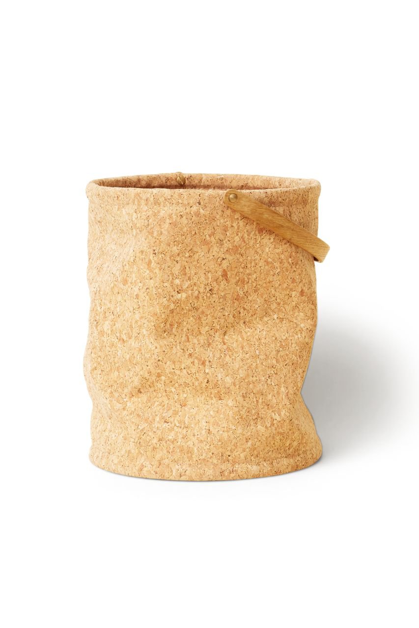 畳んだり伸ばしたり。形を変えられるデンマークの「FORM & REFINE/フォーム&リファイン」コルク製のバスケットは、雑誌や小物など、散らかりがちなものをおしゃれに収納。木製の持ち手と布地のような質感が特徴です。