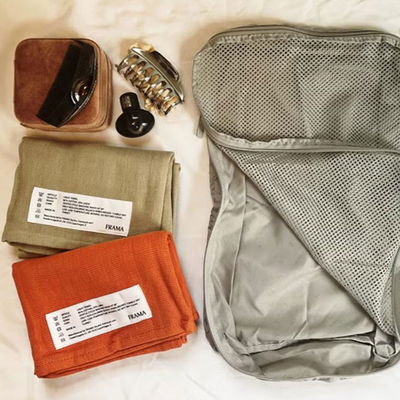 「ベーシックなアイテムこそかわいいものを揃えたい! 「フラマ」のタオルは、自然素材を使用し手触りがいいのはもちろん、他にはないカラーが魅力的。大きすぎず小さすぎない、絶妙なサイズ感も◎。旅先で何かと役立つループが付きです。収納アイテム、「モルン」の“ケース”は、2サイズ展開。軽くて、収納した中身が一目でわかる便利さも。アルファベットが散りばめられているデザインがさりげなくキュート。」(アシスタントエディター TOMOYO)