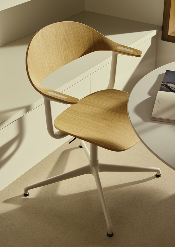 デザイナーのエルワン・ブルレックが手がけた「raawii/ラーウィー」のラウンジチェア。広めの座面に腰掛け、背もたれに上半身を預けると、その快適さに驚きます。板座・張座の2種類があり、さらにそれぞれ豊富なカラーバリエーションをラインナップ。ワークスペースが洗練された空間に。