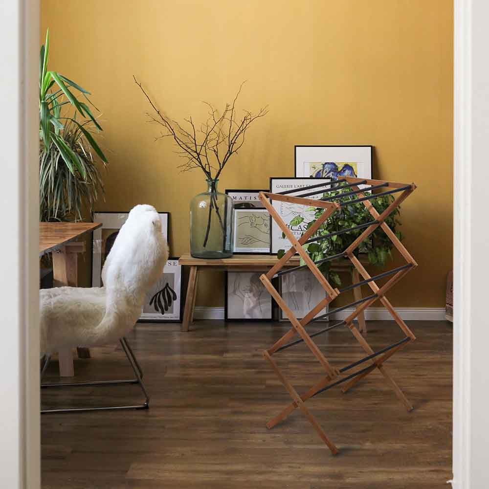 ポーランドの家庭用家具メーカー「Sepio/セピオ」のランドリーラック。室内やベランダで、衣類やタオルを干すことができます。おしゃれなデザインで、軽量で使いやすい折りたたみ式。FSC認証を受けた木材のみを使用し、リサイクルできないニスや塗料は使用していないという、環境にも配慮された点もポイント。