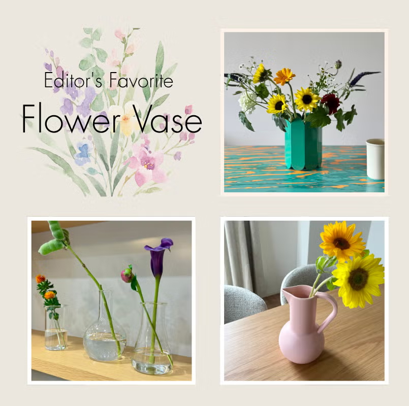インテリアに映えるフラワーベース活用のヒントが、きっと見つかるはず! 日々多くの最新プロダクトや情報に触れるエディターたちが選び抜いたフラワーベースとは? それぞれのエディターのおすすめコメントとともに、その魅力を最大限に引き出す花の生け方をご紹介。