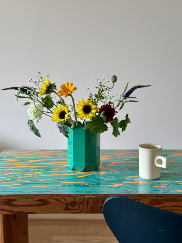 「これまで花瓶はガラスや白い陶器など、生けやすそうな色を選びがちでしたが、フローリストの岡本美穂さんがおっしゃっていた「花を飾っていない時もオブジェのように楽しめる花瓶を選ぶのがおすすめ」という一言でカラフルな花瓶に開眼!「HAY/ヘイ」の“Arcs Vase”はベルギーのミュラーヴァンセーヴェレンによるカラーリングが絶妙。花を飾らないときはインテリアとして小物入れにしています。」(エディター NORI)