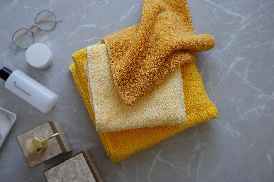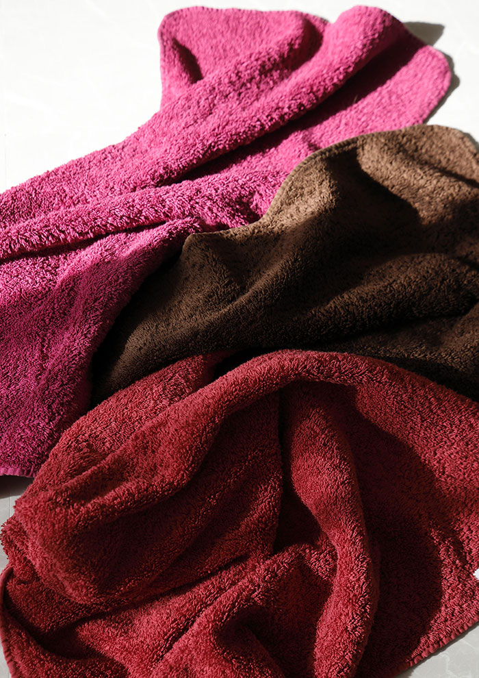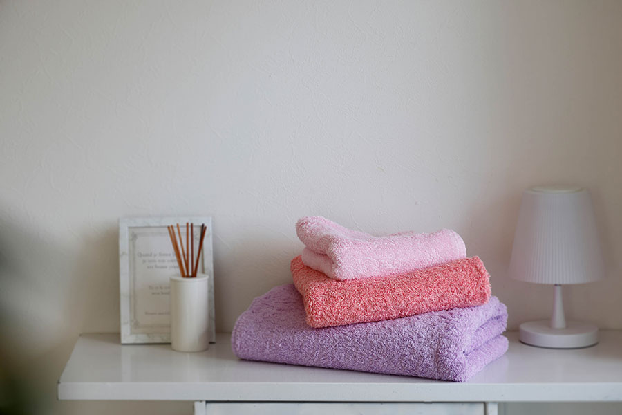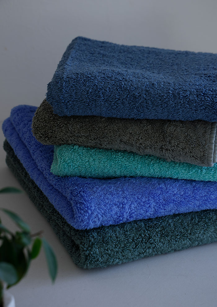 フェイスタオルは、手を拭いたり顔を拭いたりと使用頻度が高いから、質にもこだわりたい! なめらかな肌ざわりと程よい厚み、後染めのため洗濯しても色落ちしにくく、安心して毎日使えます。華やかな色合いのタオルは、重ねて並べるだけで日常空間も上品な装いに。