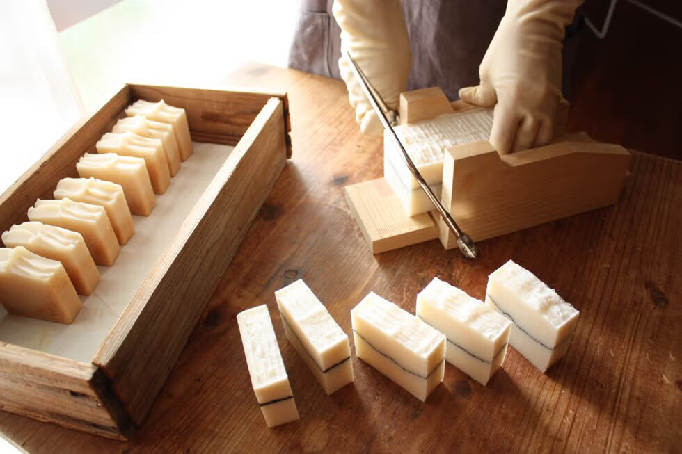 「石けんの質は素地となるオイルとそのブレンドで決まる」という考えのもと、上質な素材だけを使用。コールドプロセス製法では熱を加えず、ゆっくりと時間をかけて作られる優しい石けんです。