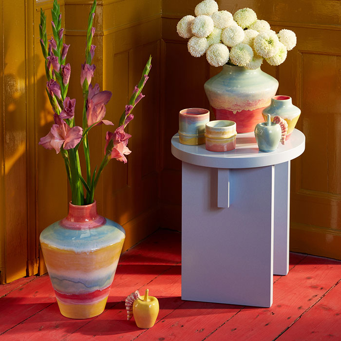 デンマークの歴史ある陶磁器ブランド「KAHLER/ケーラー」と同じくデンマークの人気テレビタレントであるデザインデュオの「キムポップ」のコラボレーションシリーズを先行販売中。カラフルで遊び心ある北欧デザインで毎日が楽しく。