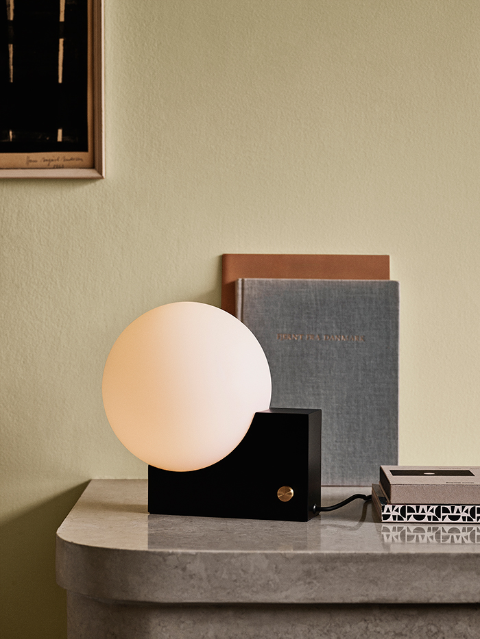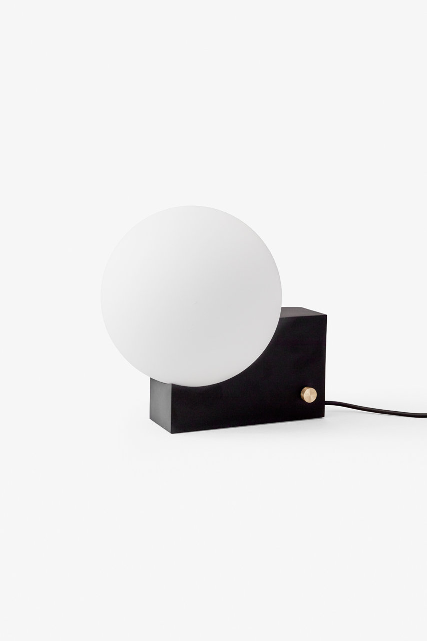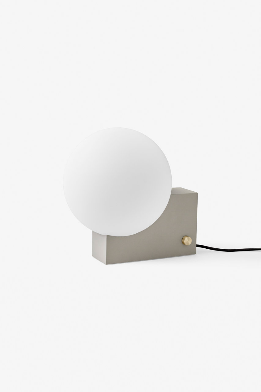 月を連想させるような丸いオパールガラスのシェードと、長方形の本体が組み合わさったデザインの「ジャーニー」。シックで洗練された存在感です。
