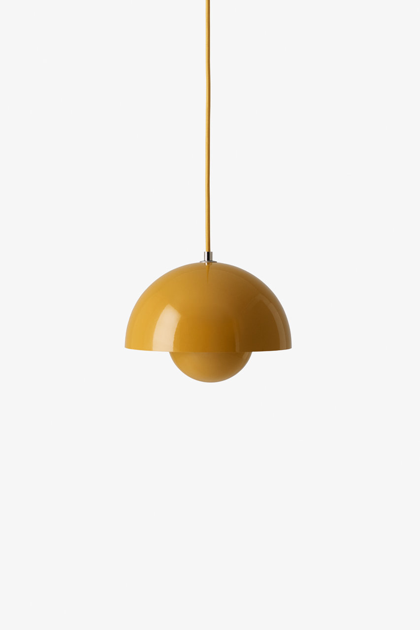 デザイナー、ヴァーナー・パントンによる、丸いシェードが印象的な「フラワーポット」シリーズのペンダントランプ。豊富なカラーから選べるのも魅力的。