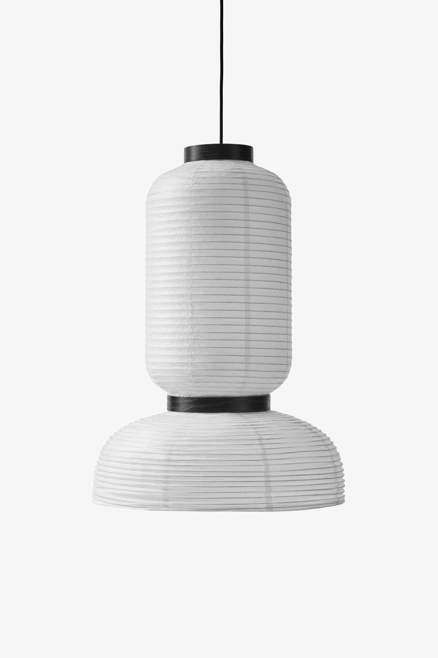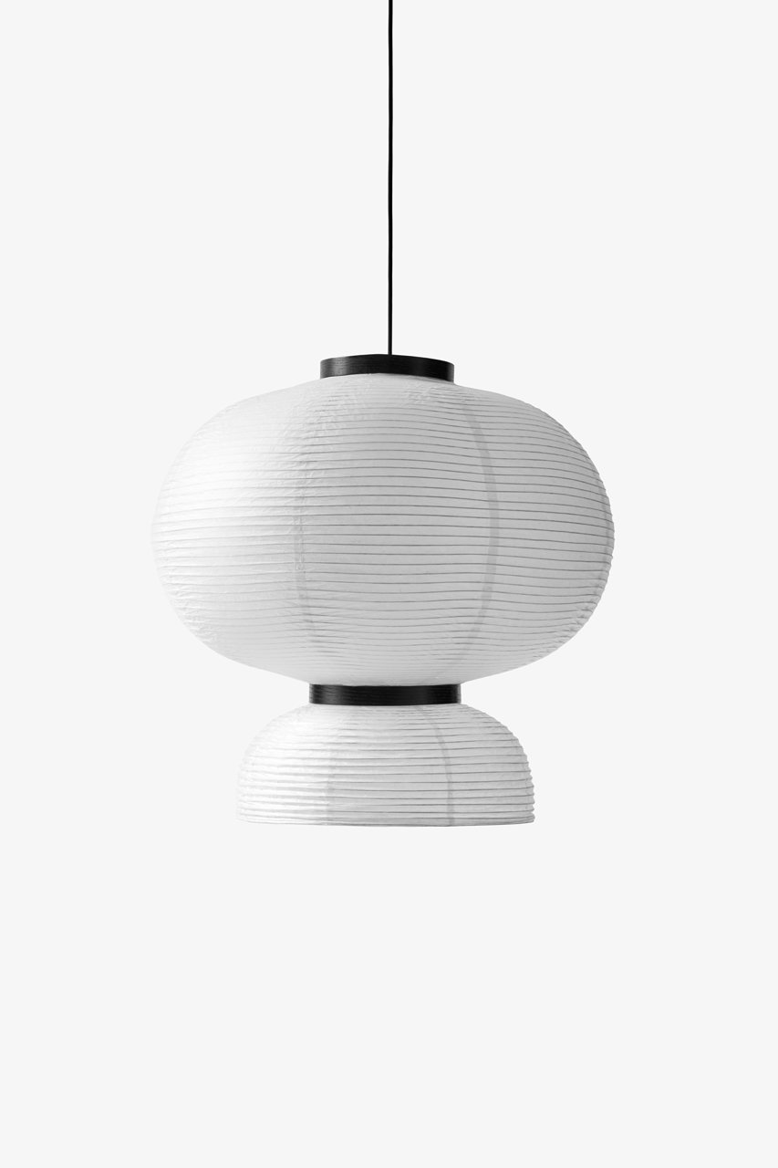 ランタンを思わせるようなデザインの照明「フォルマカミ」。さまざまな大きさや形を組み合わせたシェードは、職人が一枚一枚丁寧に紙を骨組みに貼り付け作られています。