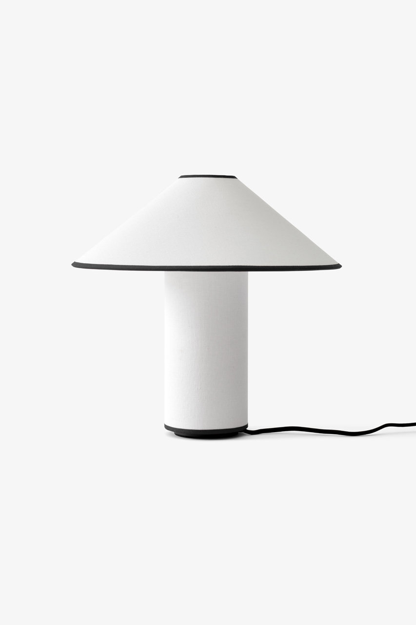 フランスの著名な作家にちなんで名づけられたテーブルランプ「コレット」。コットンとリネンのブレンドで構成されたオフホワイトのシェードがエレガント。